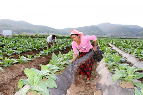 眼见天气放晴,烟农正忙着抢抓晴好天气为烤烟揭膜培土,长势喜人的烤烟承载着烟农丰收的希望。(景朝荣 摄)