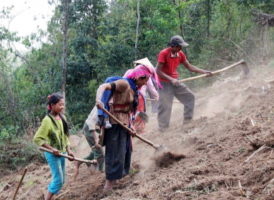 趁着天气晴朗,农户全家老少齐上阵,赶紧松土整地,把杂草薅出来,为雨季来临的播种做好准备。(景朝荣 摄)