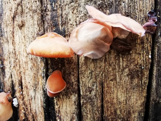 土膏松暖都渗入,蒸出蕈花团戢戢。