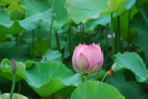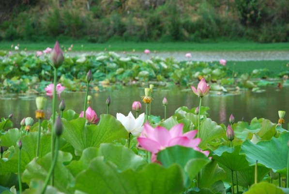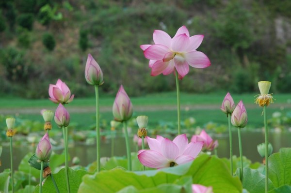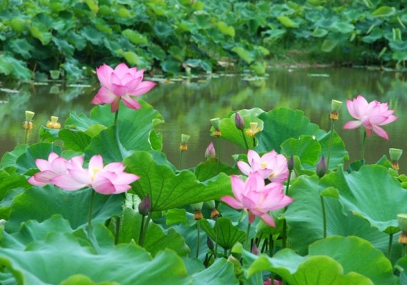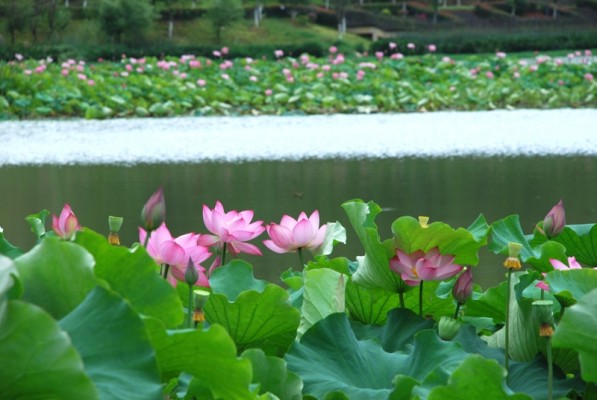 中国传统文化中荷花象征出污泥而不染的的人品。正如周敦颐的《爱莲说》:水陆草木之花,可爱者甚蕃。晋陶渊明独爱菊。自李唐来,世人甚爱牡丹。予独爱莲之出淤泥而不染,濯清涟而不妖,中通外直,不蔓不枝,香远益清,亭亭净植,可远观而不可亵玩焉。(杨成菊摄)