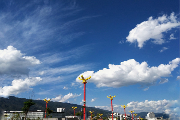 在蓝宝石般的天空,漂浮着雪一样的云朵,或淡或浓,或聚或散,给人一种无法言喻的美。