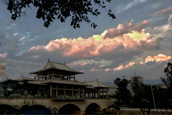 天边的火烧云几乎渲染了半边天,和天空的颜色合为一体,就像一幅美丽的水彩画。