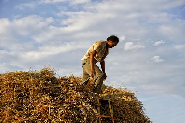 手有余粮,心中不慌。站在高高的谷堆上面,丰收的喜悦让农户们底气十足。(翟正琼)
