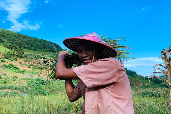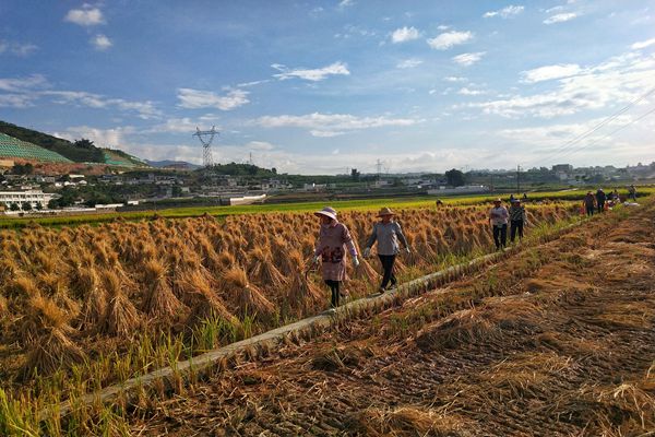 村民们用着最传统的方式进行收割,敲打出田野里最古老,最动听的旋律,秋收顿时变得更有意义了。(刘太周)