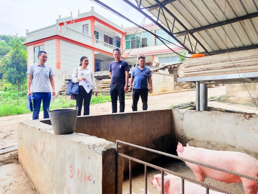 监督检查组实地查看项目点养殖小区建设管理情况。(张菊 摄)