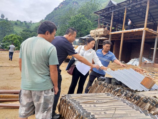 监督检查组实地查看项目点活动室项目建设材料到位情况。(张菊 摄)