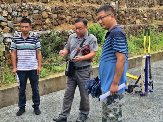 监督检查组实地查看项目点活动场所建设问题整改情况。(孙阳俊 摄)