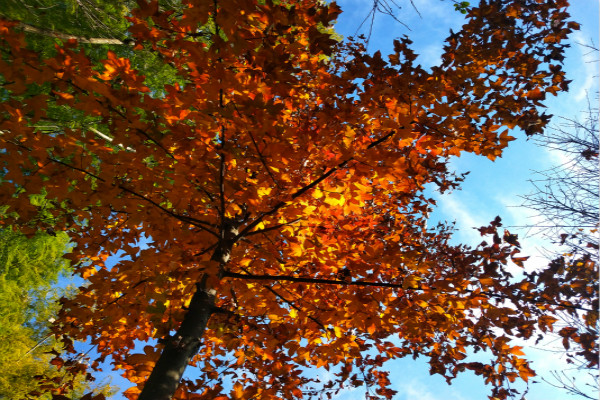 深秋时节,秋风变幻了叶子的颜色,红如阳、黄似沙,缓缓坠落,静静缤纷。