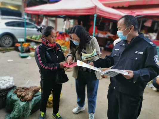 法律宣传志愿服务队深入集贸市场,为群众送去法律知识,增强群众的法律意识。