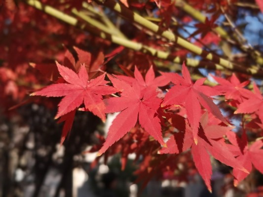 那一缕阳光驱散了大地上沉浸着的缕缕寒气,唤醒了红叶的热情,透过叶间的间隙,千丝万缕般的光影洒落,让人幻想着伸出手去想抓住那一缕冬日的阳光,却总是无影无踪。图/陈溪莲 文/王晓燕