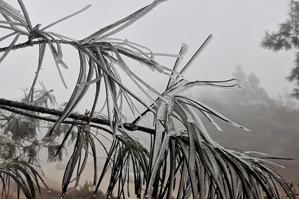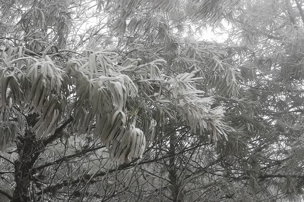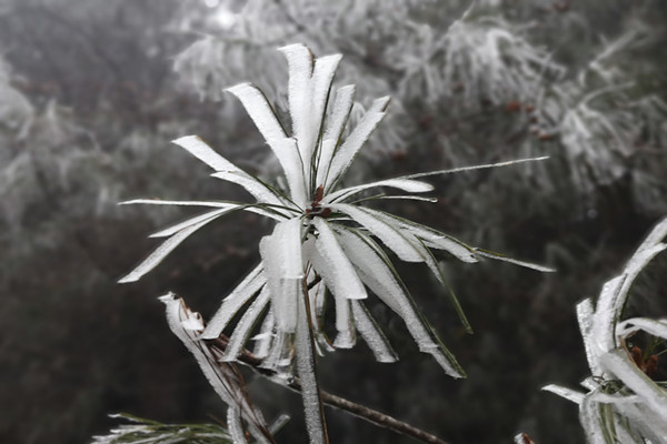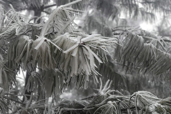 时间,在这里定格,将一切的美好都凝结为银花挂在树梢,颗颗晶莹剔透,让人不得不被她吸引,驻足听她述说昨夜发生的奇观。