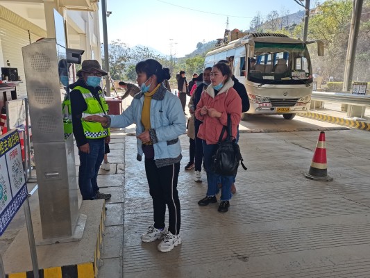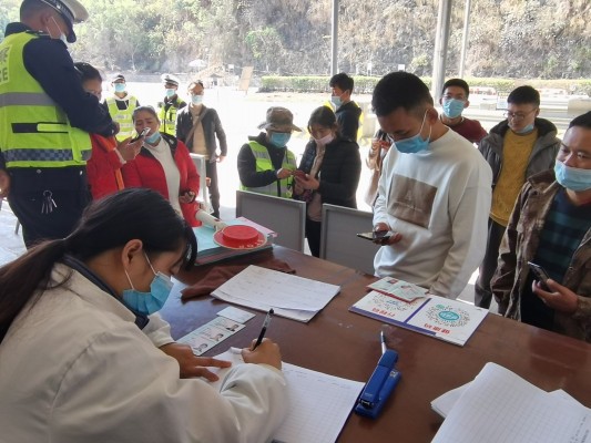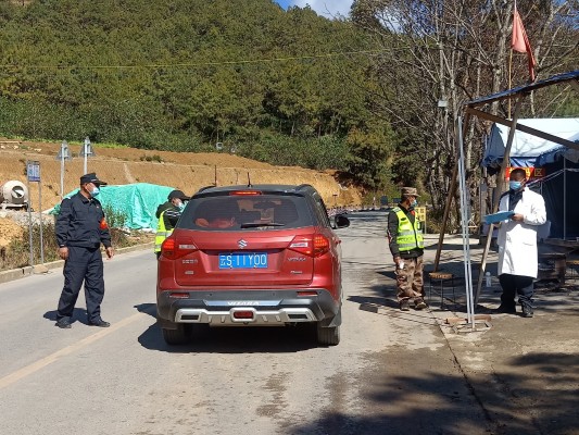 在小竹箐疫情防控点,工作人员对过住车辆人员认真进行检查。