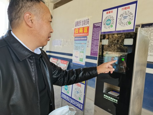 在链子桥疫情防控点,全部过住人员排队扫码登记。