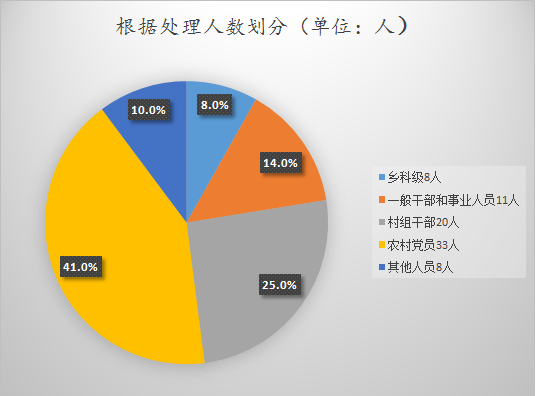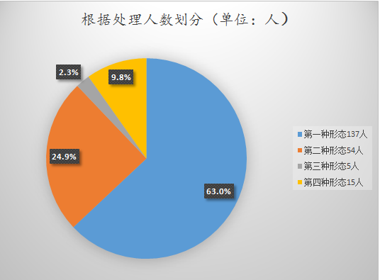 坚持惩前毖后,治病救人的方针,把纪律和规矩挺在前面,全县纪检监察机关运用监督执纪“四种形态”处理党员干部217人,其中运用第一种形态处理137人,占63%;运用第二种形态处理 54人,占24.9%;运用第三种形态处理5人,占2.3%;运用第四种形态处理15人,占总数的9.8%。(沈爱娟)