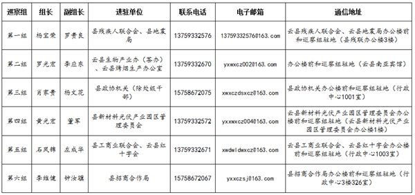 各巡察组巡察期间的联系方式: