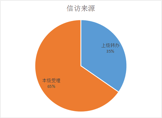 从信访来源看,上级转办9件,占35 %;本级受理17件,占65%。