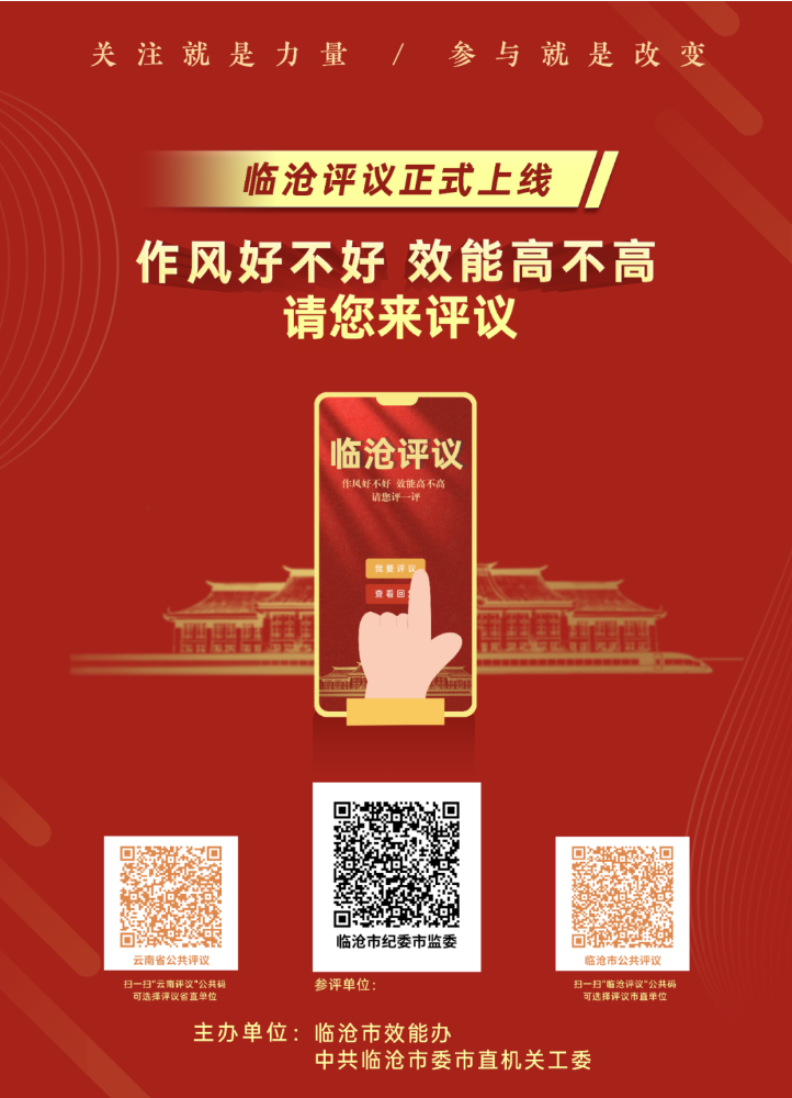 为深入推进作风革命提升机关效能,推动临沧市纪委市监委更好服务企业、服务群众、服务基层,以作风建设新突破、新成效助推高质量发展,现面向社会各界公开“临沧评议”微信扫码即时评价渠道,广泛接受群众的评价监督。