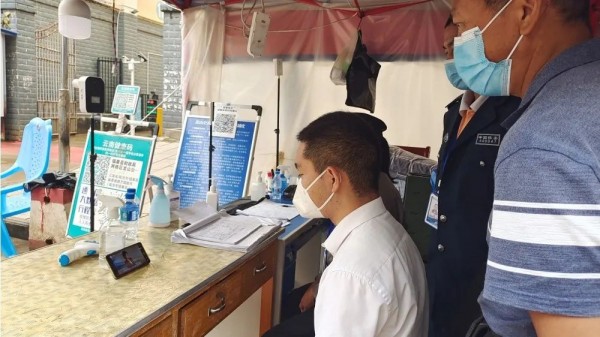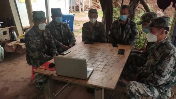 纪检监察干部与民兵在边境卡点收看党的二十大开幕会
