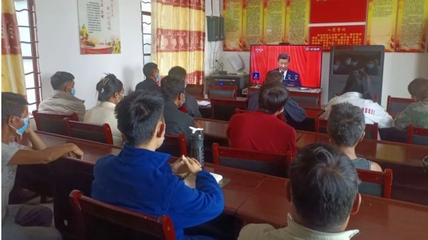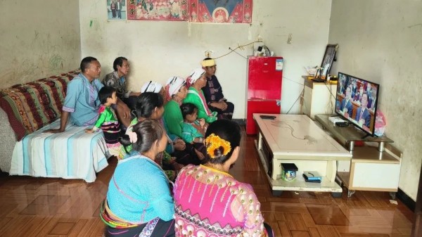军赛民族乡村组干部与家人一起收看党的二十大开幕会