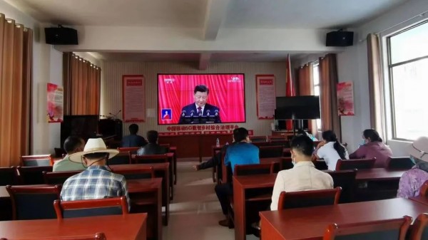 木场乡龙塘村干部和党员群众收看党的二十大开幕会