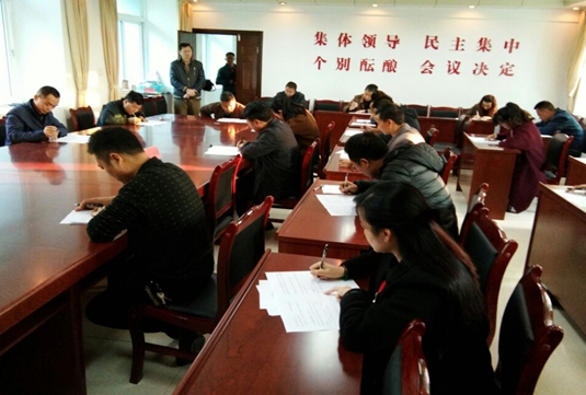 测试工作从严从实。从试卷出题到印制装袋、密封保存全过程保密,测试之前由参考人员验证试卷密封情况,之后监考人员当场拆封分发试卷,程序规范严密。参考人员实行单人单座,不准携带除必需文具外的任何物品,严禁交头接耳、相互抄袭作弊。为确保测试的纪律性和严肃性,特别邀请了县委组织部干部对考试进行全程监督,并声明和强调考场规则,县广播电视台对测试进行了全程录像。阅卷工作采取封闭式进行,细化阅卷、核分、统分工作,责任到人。切实做到真学真懂、真考真严。