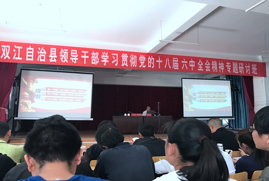 近期,双江自治县举办全县领导干部学习贯彻党的十八届六中全会精神专题研讨班。全县非实职处级领导干部和科级实职领导干部参加。截止目前,共举办2期研讨班,累计培训469人次。