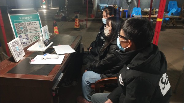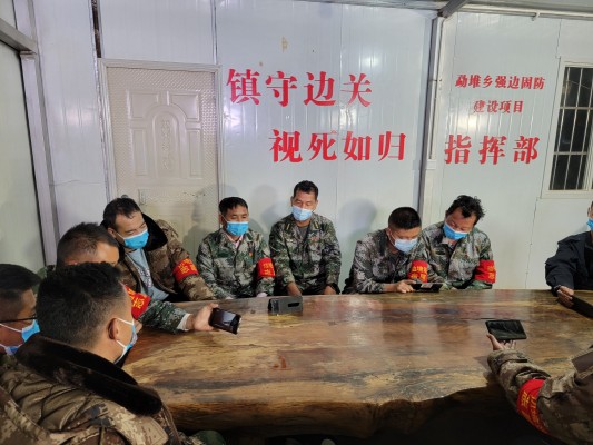 勐堆乡蚌孔村草山大垭口疫情防控边境执勤点强边固防突击队员集中观看电视专题片《零容忍》(祁华宏 摄)