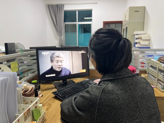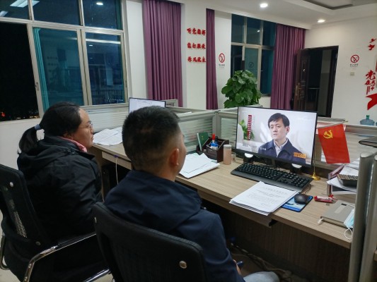 县退役军人事务局干部职工通过网络观看《零容忍》(金学玲摄)
