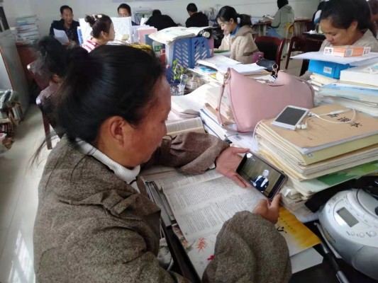 永德县第二完全中学的教师在学生晚自习的空档,抢抓时间在手机上观看《清流毒—云南在行动》第二集。
