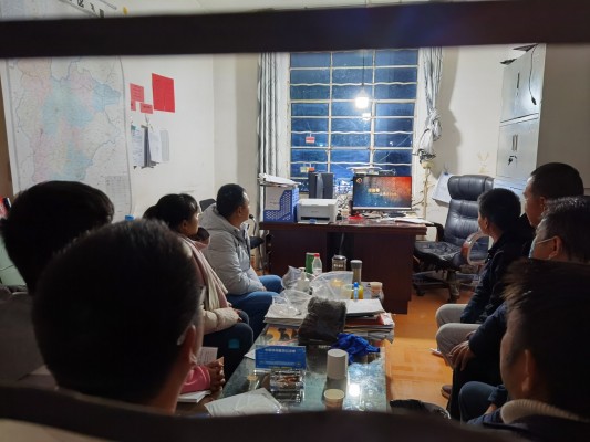 因视频会议冲突,班卡乡党委书记带着干部职工到乡政府驻地的村委会按时观看《清流毒—云南在行动》第二集。