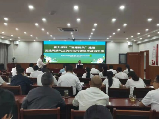 为深入推进市司法局“清廉机关”建设,深化党风廉政和纪律作风建设,近日,驻市司法局纪检监察组负责同志围绕“如何加强党的政治建设?怎样打造清廉司法行政队伍?如何营造机关清廉文化氛围”三个方面内容深入阐述了建设司法行政“清廉机关”的目的和意义,为39名司法行政干部上了一堂“提神醒脑”的专题廉政党课。