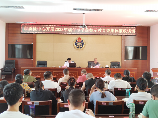 为进一步严明纪律要求,锲而不舍落实中央八项规定精神,助推“清廉云南”建设“临沧实践”“质检行动”,2023年6月21日下午,市质检中心开展端午节前警示教育暨集体廉政谈话工作会议。党组成员、副主任杨榆辉主持会议,党组书记、主任开展集体廉政谈话,全体干部职工参加会议。