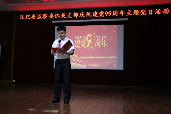 “我志愿加入中国共产党,拥护党的纲领,遵守党的章程,履行党员义务……。” 7月1日,临翔区纪委监委机关党支部举行庆祝建党99周年主题党日活动。区委常委、区纪委书记、区监委主任熊扬生同志以普通党员的身份参加所在支部活动,通过重温入党誓词、朗诵红色经典诗歌、重温红色历史,过集体政治生日,激励全体党员坚定理想信念、牢记宗旨使命、勇于担当作为,以更加昂扬的精神状态投入到纪检监察和巡察工作中,用实际行动向党的生日献礼。