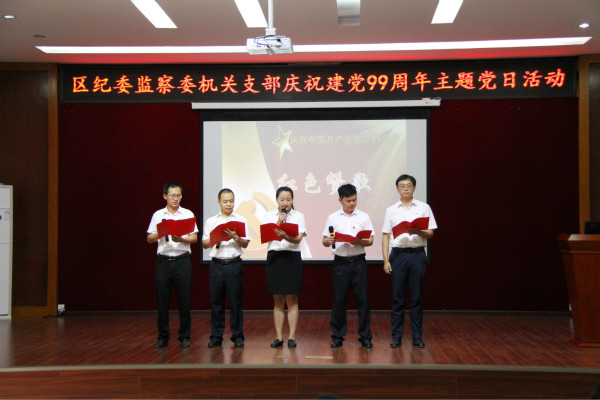 各党小组代表朗诵经典诗歌《红色赞歌》、《七月的天》,歌颂中国共产党,歌颂伟大的祖国,党员们的朗诵字正腔圆,感情饱满,激情澎湃,赢得现场阵阵掌声。