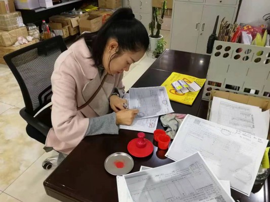 县纪委县监委干部到超市查看发票账单,了解各单位是否存在违法中央八项规定精神,购买烟酒等情况。