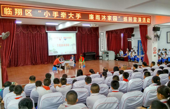 4月18日,由临沧市纪委、临沧市教育局牵头组织的“小手牵大手、廉雨沐家园”主题巡回宣演活动在临翔区南屏小学开展,临翔区纪委副书记、区监委副主任汤赞出席活动并作宣讲。