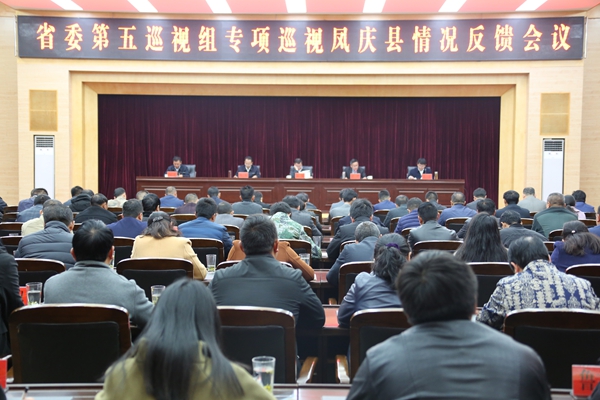 按照省委巡视工作领导小组的安排部署,2018年12月5日,省委第五巡视组向临沧市委书记杨浩东通报了巡视情况。12月6日,巡视组向凤庆县反馈巡视情况。省纪委常委、省委巡视工作领导小组成员、省委巡视办主任杨军传达了陈豪同志在听取十届省委第五轮巡视情况汇报时的重要讲话精神,省委第五巡视组副组长彭智分别向凤庆县委书记陈昌砚和领导班子反馈了巡视情况,临沧市委书记杨浩东对落实巡视反馈意见提出了整改要求,凤庆县委书记陈昌砚主持向领导班子反馈会议并就做好巡视整改工作作表态讲话。