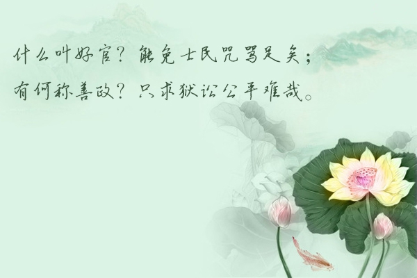 做“免士民咒骂”的“好官”,行“狱讼公平”的“善政”,实在难能可贵。这副对联采用自问自答的句式,提出了为官为政的最低标准,同时也道出了为官为政的最高标准。