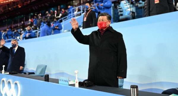 2月20日晚,第二十四届冬季奥林匹克运动会闭幕式在国家体育场隆重举行。这是国家主席习近平同国际奥委会主席巴赫在主席台上向大家挥手致意。新华社记者 李学仁 摄