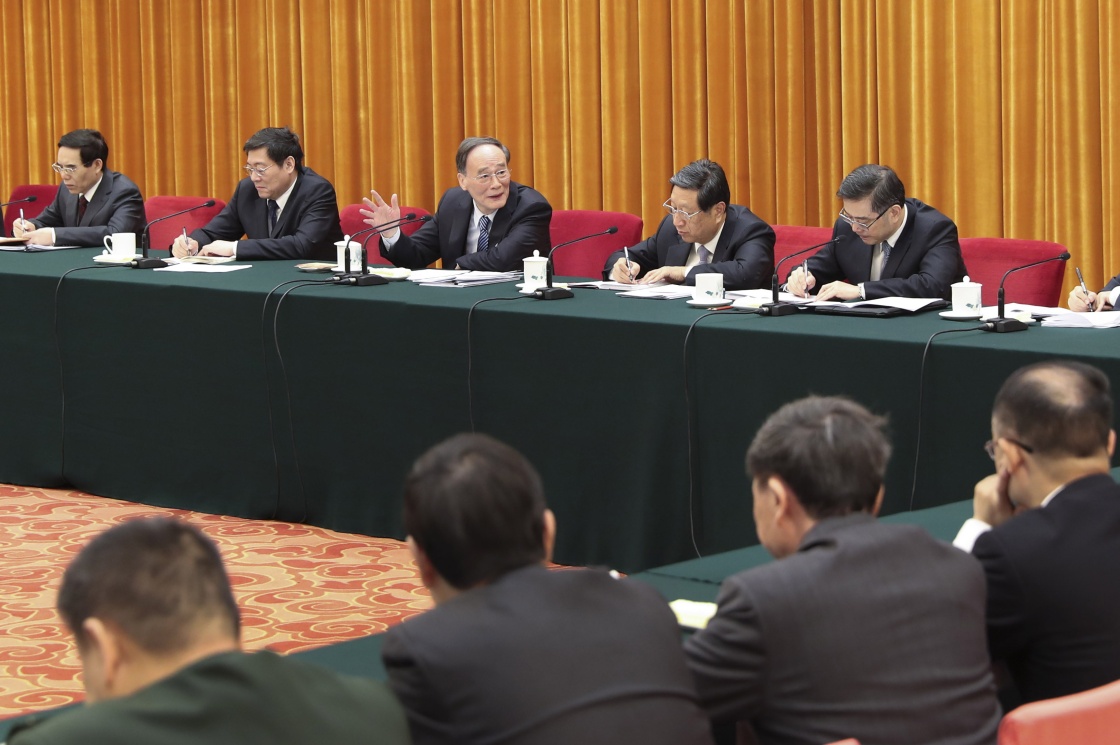 3月7日,中共中央政治局常委、中央纪委书记王岐山参加十二届全国人大五次会议湖南代表团的审议。新华社记者 庞兴雷 摄