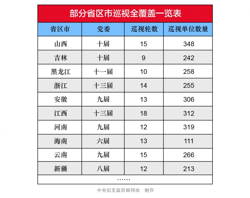 目前,仍有部分省区市在按照计划有条不紊地开展巡视工作,即将在换届之前完成巡视全覆盖的任务。