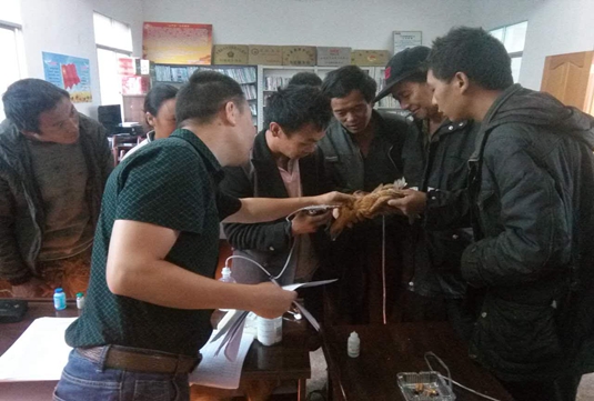 培训采取“白+黑”的模式,即:白天进村入户到田间地头实地作实操指导,晚上定点在扎模村委会授课讲解。针对农作物生产技术、农作物病虫害防治技术、家畜家禽养殖、动物疫病防治技术四个方面的内容进行专项技能培训。参训群众认真倾听授课,课外积极与授课教师进行咨询交流、探讨分析,总结学习收获和分享实践经验。培训还对106名参训群众进行了动物免疫接种专项能力测试考核,测试考核通过106人,通过率为100%。