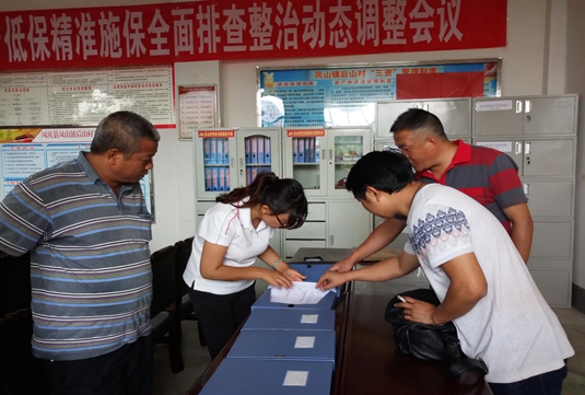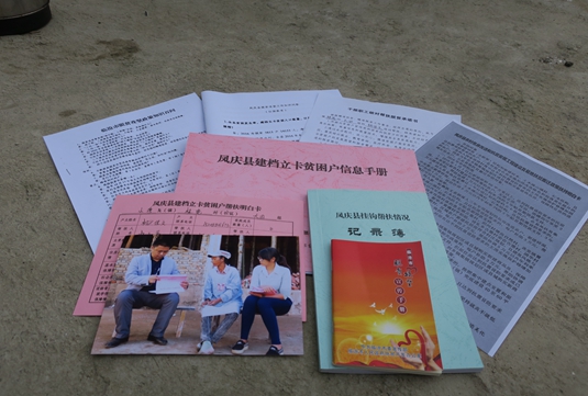 图为近日,凤庆县纪检干部深入凤山镇后山村查看档案