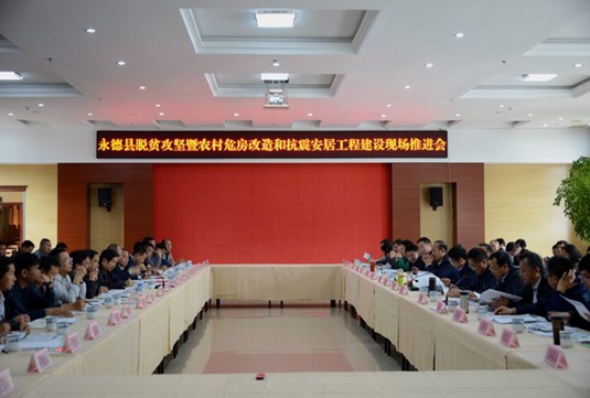 4月6日,永德县召开脱贫攻坚暨农村危房改造和抗震安居工程建设现场推进会,会议总结今年来永德脱贫攻坚工作,分析找准存在的困难问题,对全县脱贫攻坚工作再部署、再加压,进一步明确了下步脱贫攻坚的思路、措施和重点,强力助推全县2016年脱贫攻坚工作,确保到2017年实现4个贫困乡、31个贫困村2.82万农村贫困人口全部脱贫。