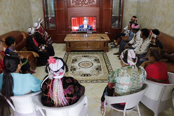 沧源县佤族群众认真收看