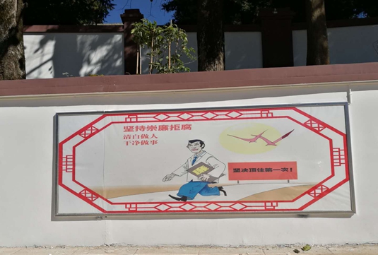 文化墙以“清廉”为主要设计元素,按照一个区域一个主题,一个板块一个风格,将廉政漫画、廉政格言警句、党纪党规以图文并茂、通俗易懂的形式,打造党员干部廉政教育“新课堂”,使广大党员干部和群众在耳濡目染、潜移默化中接受廉政教育,增强廉洁意识。