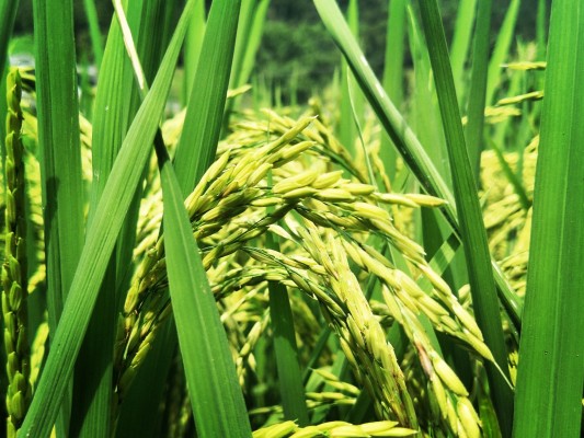 在历经阳光炙烤,经历暴雨入注后,晚稻顺利抽穗开花,灌浆的稻穗慢慢弯下了“腰”。(林丽波 摄)