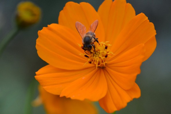 蜜蜂忙碌的身影,似乎要告诉同伴,夏季即将过去,秋天花蜜不再那么充裕。(王建波 摄)