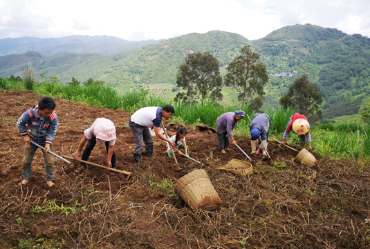 抓产业效益,激发贫困户内生动力。扎模村的主导产业为紫洋芋、魔芋、萝卜、核桃、藠头、蜂蜜等,这些农副产品因为无污染,品质好,基本不愁销路,每年一到成熟季节,各地商贩蜂拥而至,但由于农户没有组织,都是单打独斗,产品附加值低,农民一年到头也就赚个辛苦钱。为改善村产业发展状况,驻村工作队致力于加快构建新型农业经营体系,积极探索农村集体所有制有效实现形式,通过向上级争取到100余万元资金成立农产品产销专业合作社,动员农户加入合作社,合作社统一收购农户的农产品,统一标准、统一质量,然后和收购商谈判,提高了农产品的附加值。同时,将上级部门投入资金折合成股份,量化分配给贫困户和村集体,通过分红增加贫困户财产性收入,拓宽村集体收入来源,发展壮大村集体经济。