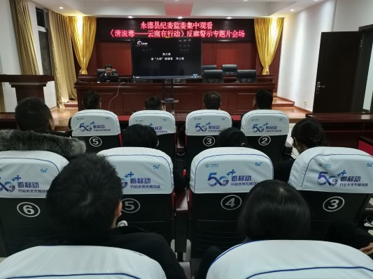 永德县纪委监委组织干部职工集中观看反腐警示专题片《清流毒——云南在行动》第三集。